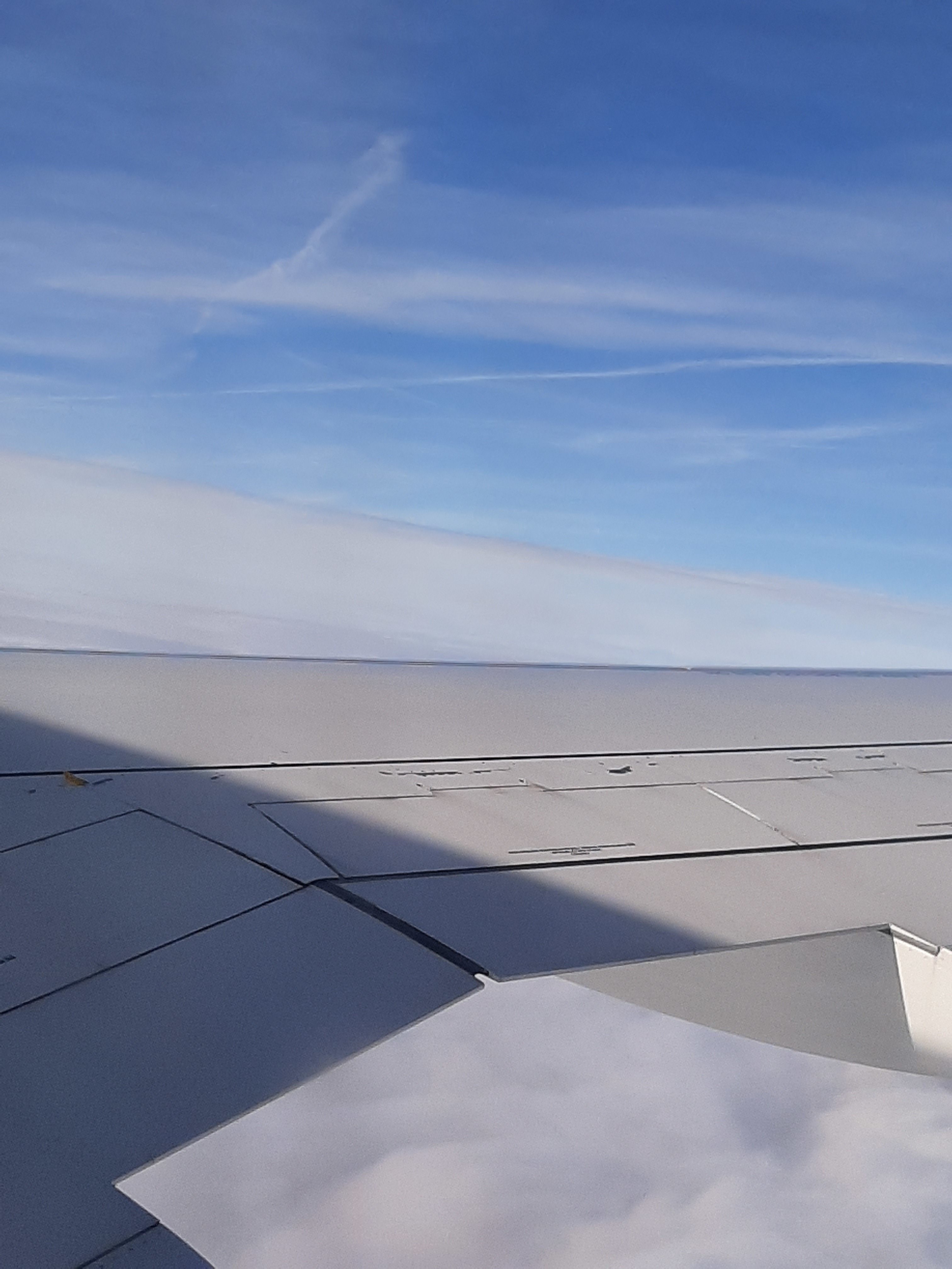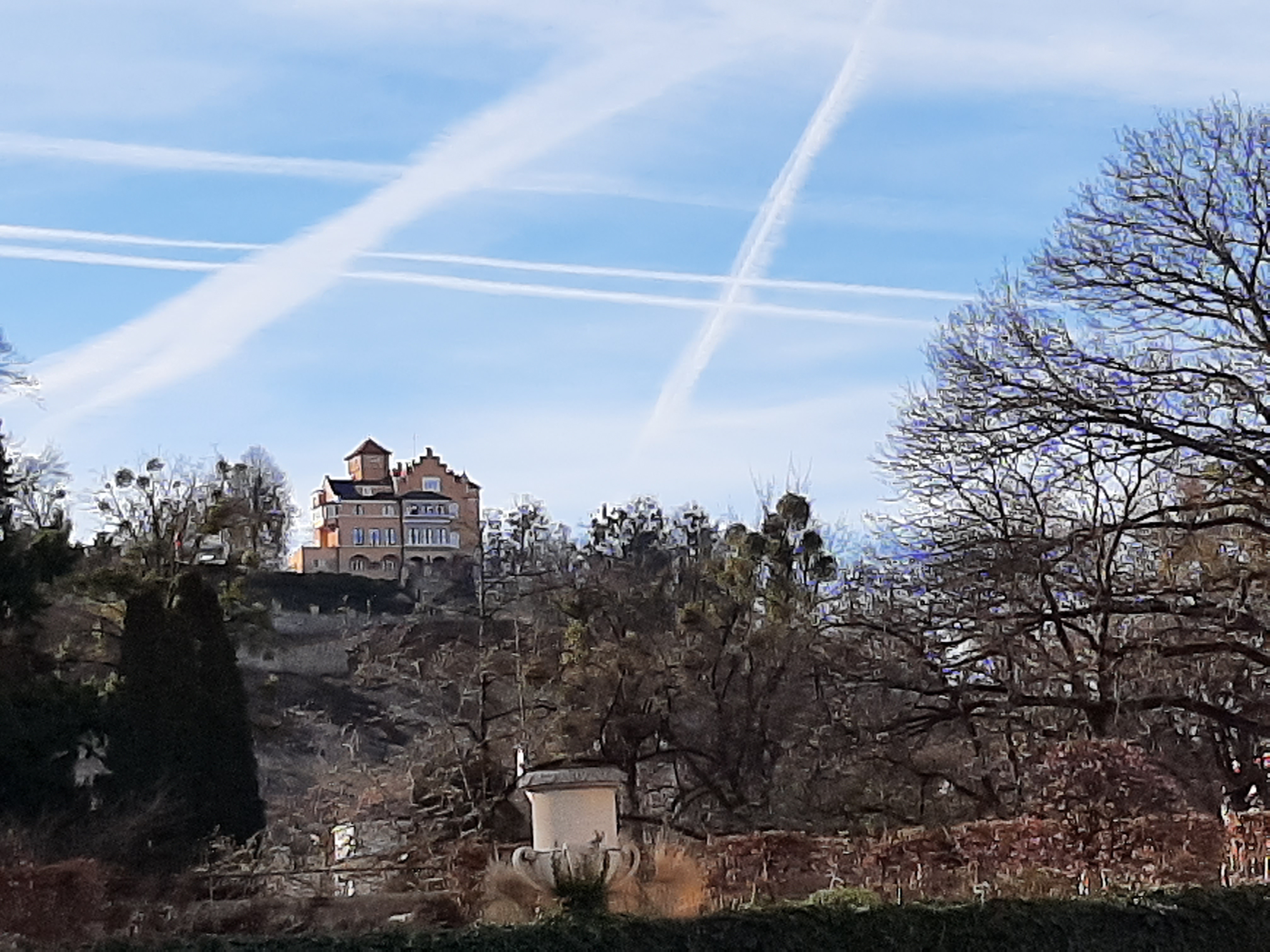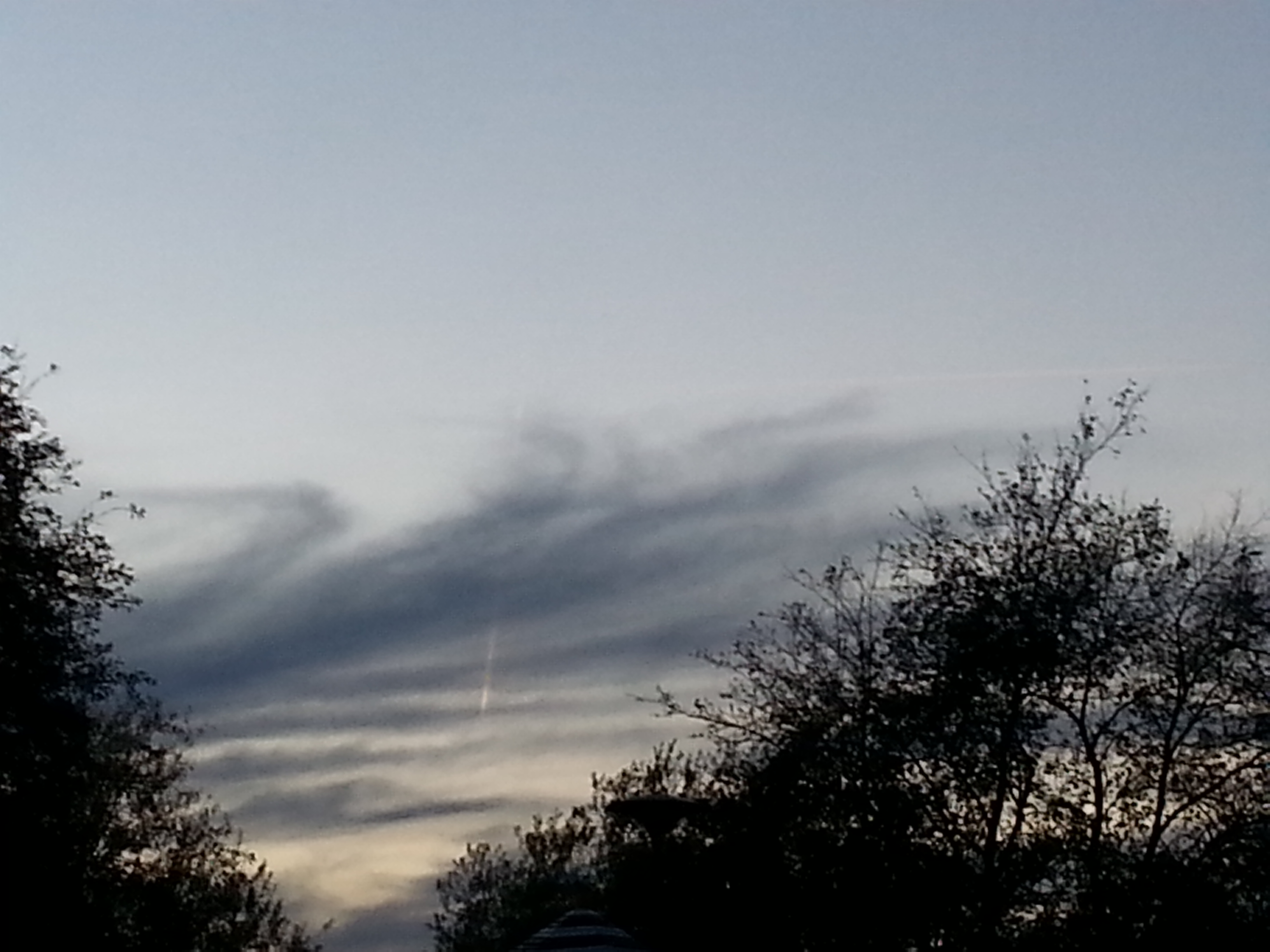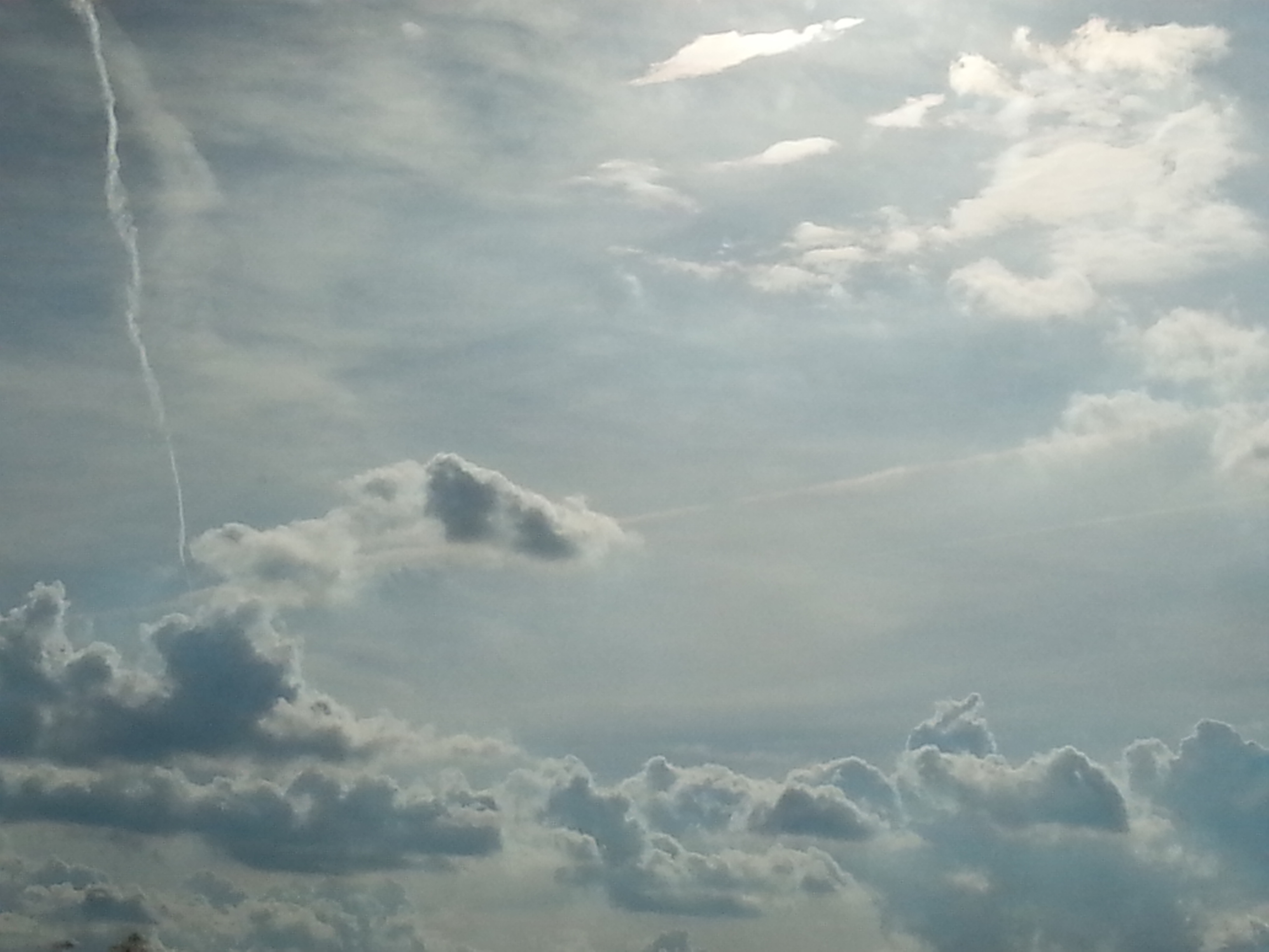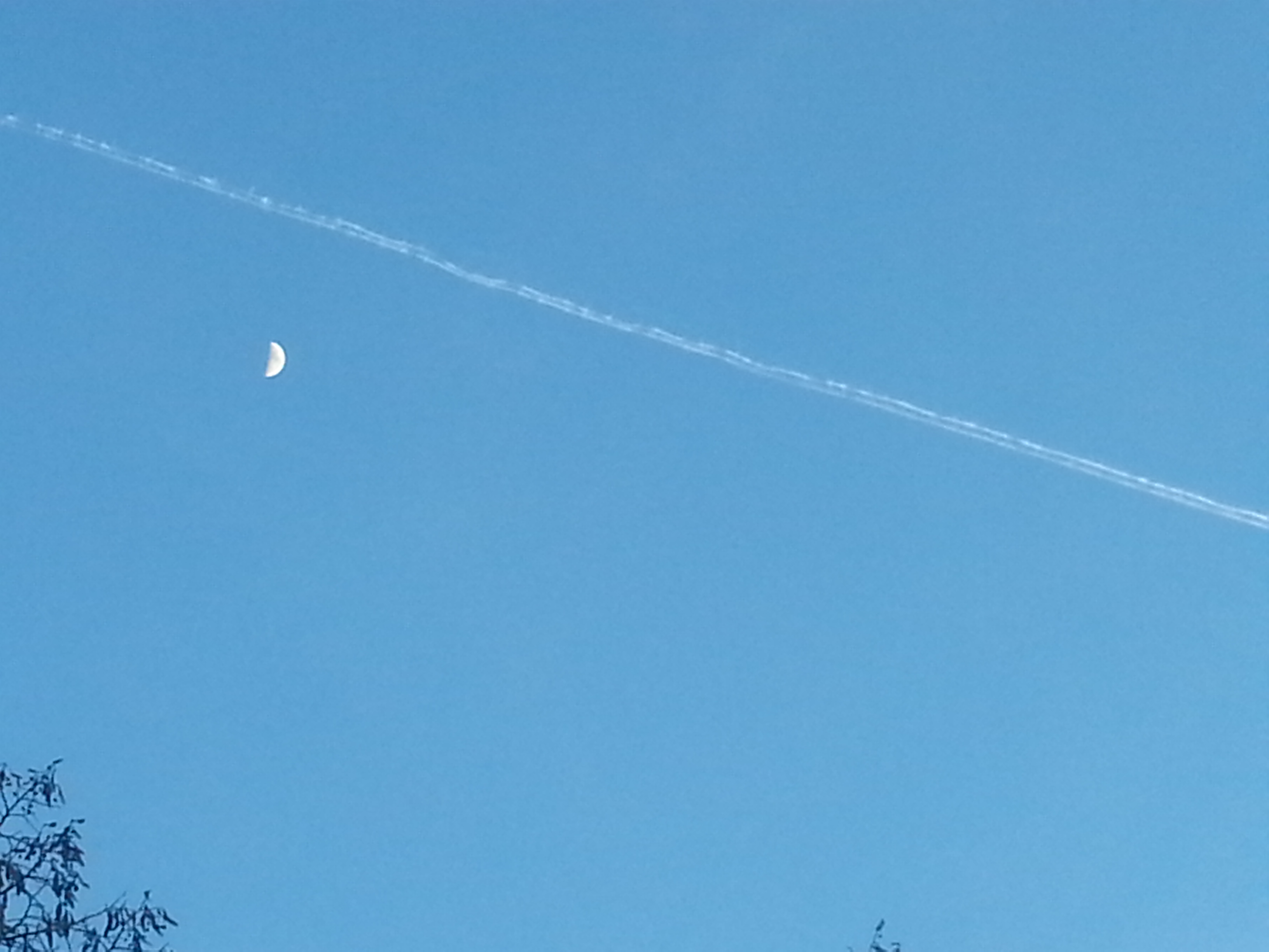 Weil durch Climate Change die Temperaturdifferenz zwischen Äquator und Nordpol geringer geworden ist, gibt es in den oberen Luftregionen sehr viel schwächere Höhenwinde.* Dadurch bleiben die Kondensstreifen, entstehend aus dem Kerosin der Flugzeuge, länger stehen und überlagern sich oft über Stunden. (1. Mai 2020, Corona Lockdown: Seit fünf Wochen sind kaum Himmelsbilder zu sehen.) Und warum wurde die Temperaturdifferenz zwischen Äquator und Nordpol geringer? Weil der CO2-Ausstoß aus dem Kerosin der Flugzeuge eine wichtige Ursache des Climate Change ist.