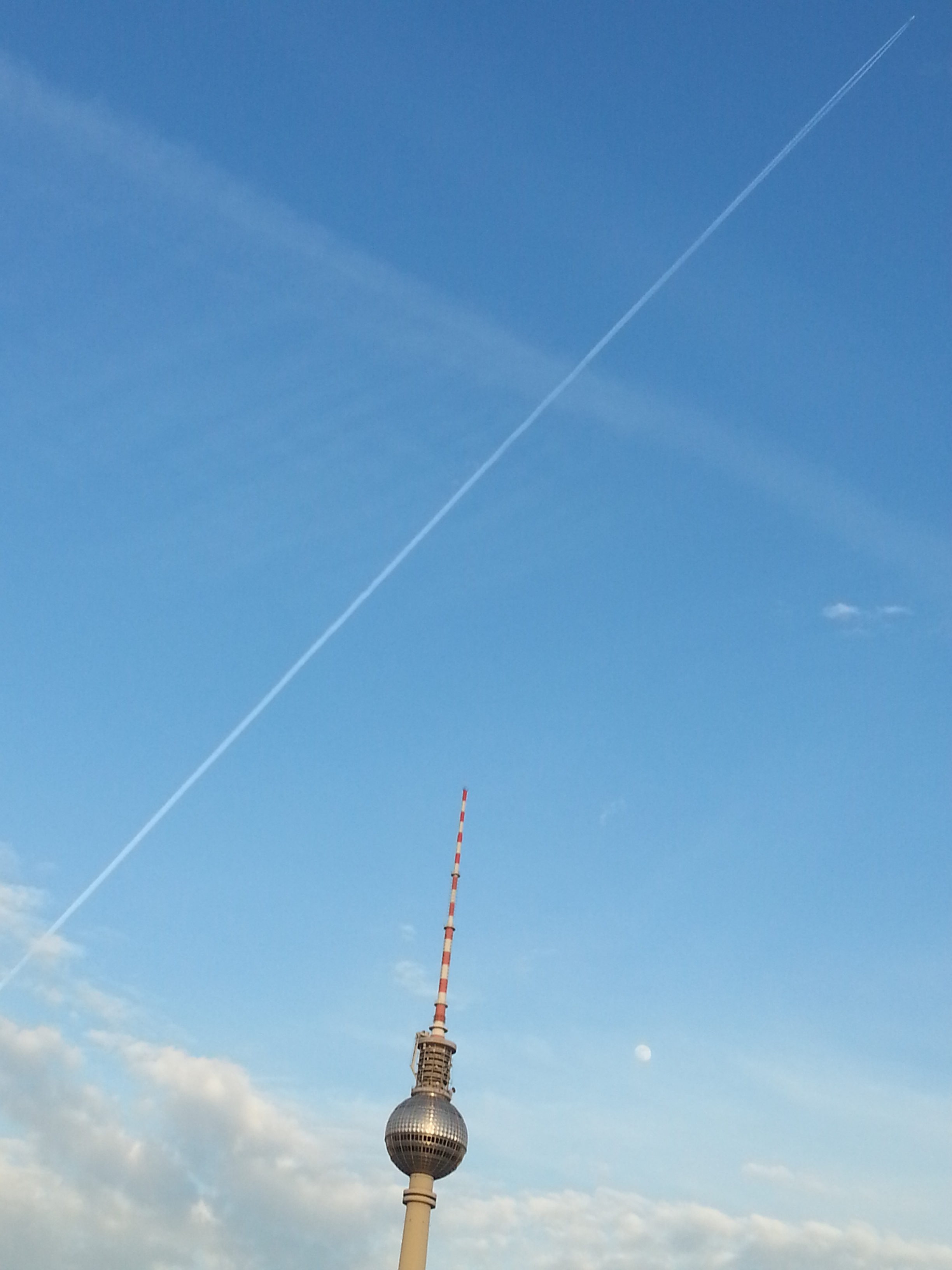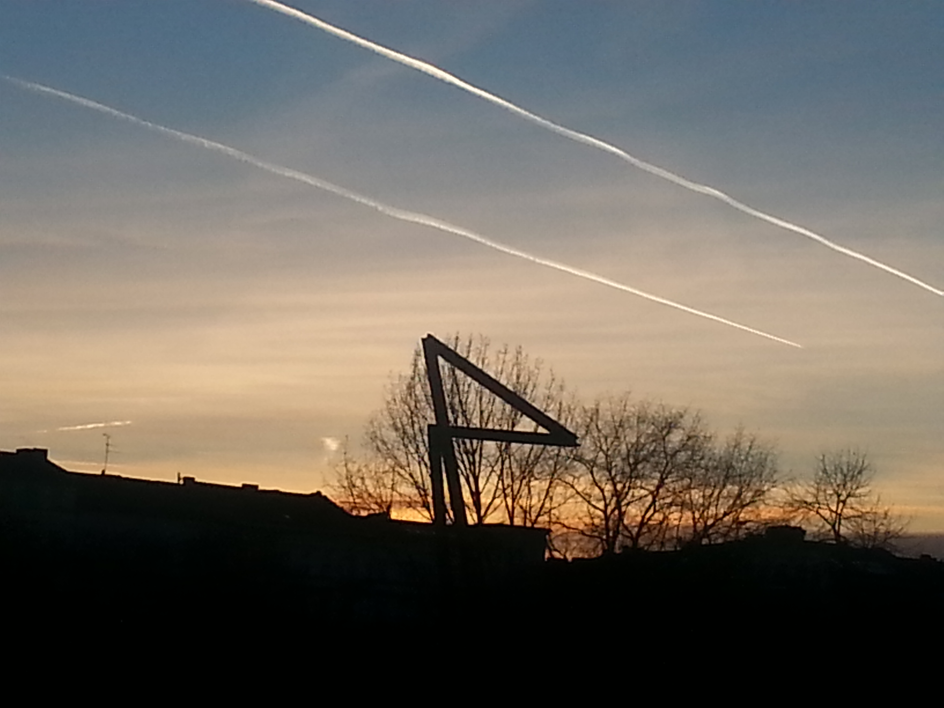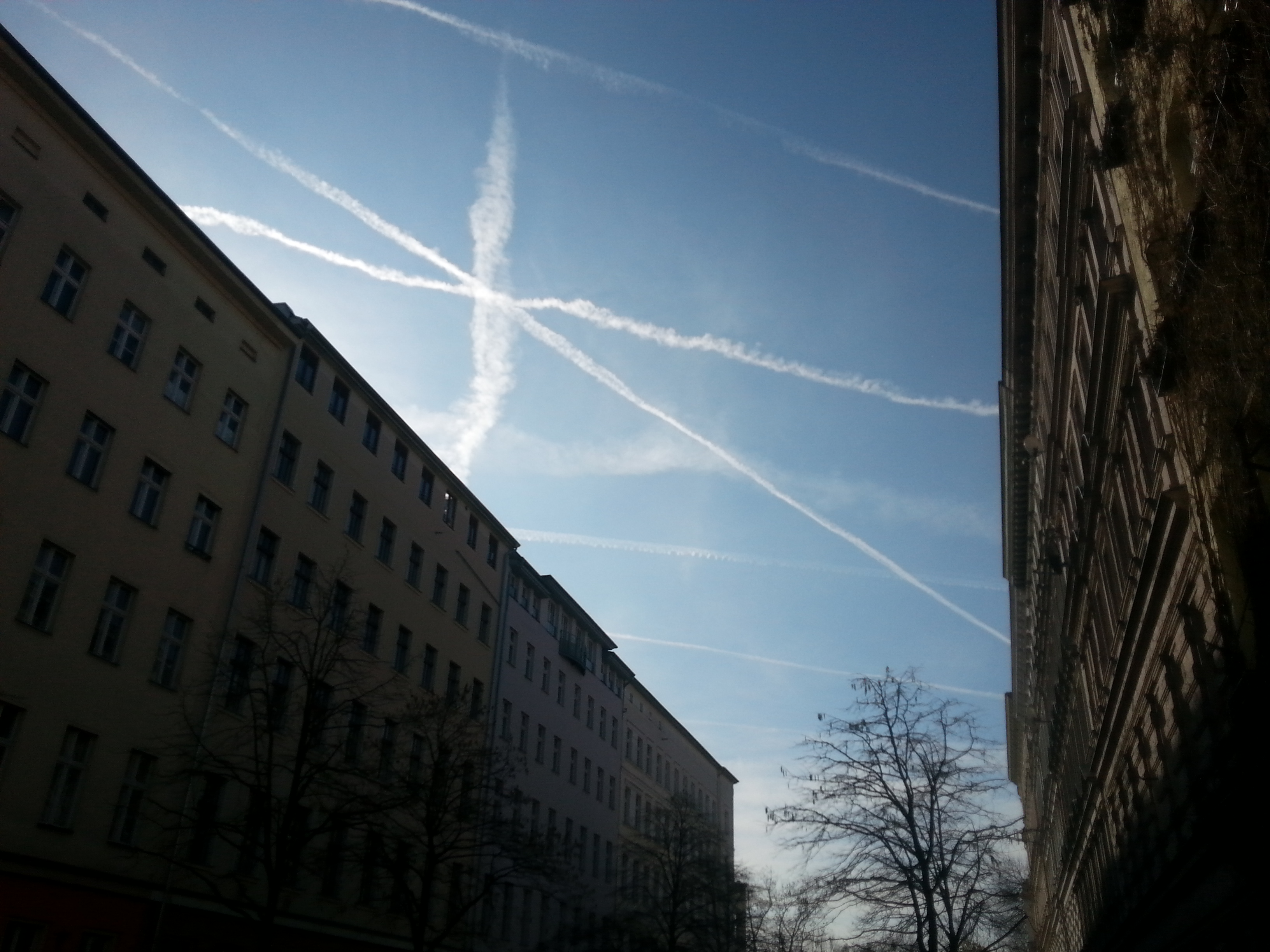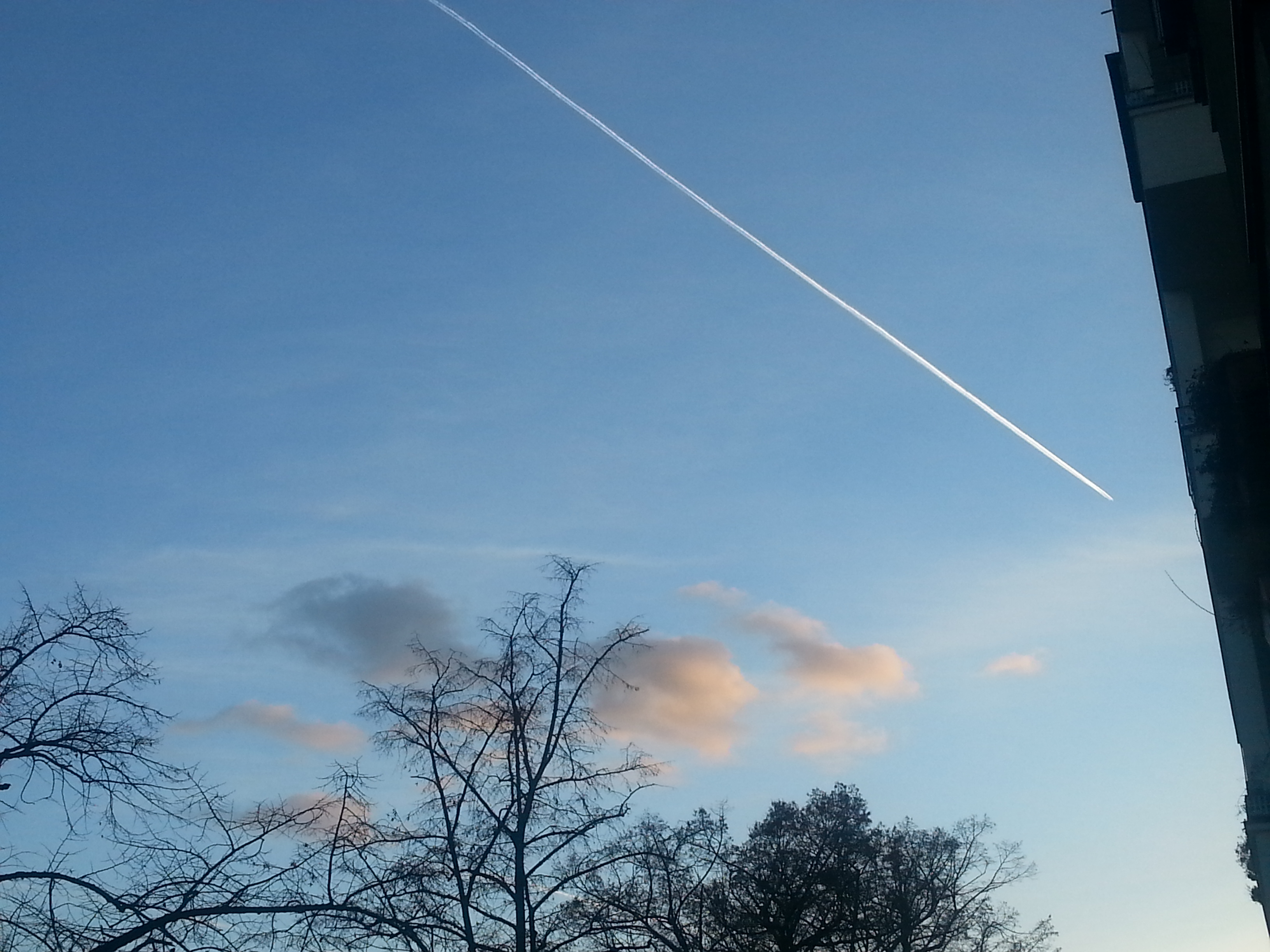 „Statt uns am Schauspiel der Kondensstreifen am blauen Himmel zu ergötzen, schaudern wir beim Gedanken, daß diese Flugzeuge den Himmel, den sie durchfliegen, verändern, daß sie ihn mit sich wegziehen, ….“